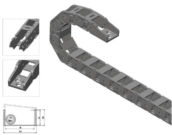 2.拓展塑料拖鏈設計使得拖鏈與拖鏈之間可進行無縫并排鏈接;